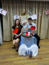 В 17.00 в актовом зале колледжа силами студентов была организована и проведена праздничная программа, посвященная Дню всех влюбленных. Влюбленные пары приняли участие в различных конкурсах, демонстрируя ум, ловкость, смекалку, а вот в конкурсе на лучшую пару в нашем колледже победили Ступаков Алексей и Вдовиченко Дарья. В качестве подарка они получили сертификат на ужин в кафе «Сердоболь». Поздравляем ребят!