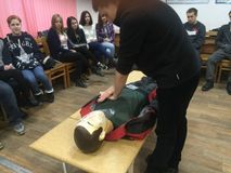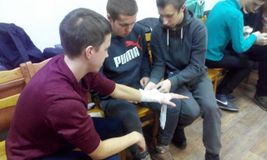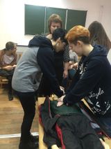 Студентам показали, как правильно выполнять приемы оказания первой медицинской помощи при кровотечениях и ранениях, химических и термических ожогах, приемы остановки кровотечения и наложения повязок на раны при различных травмах и переломов тела, как оказать реанимационную помощь человеку. В ходе занятий студенты демонстрировали на манекене как правильно оказать медицинскую помощь в неотложных ситуациях.
