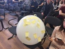 В заключение мероприятия каждый из участников краш-курса на стикере написал свое самое заветное желание и наклеил его на большой воздушный шар, который символизировал жизнь. Ребята поделились своими самыми сокровенными мыслями: кто-то мечтает закончить колледж с красным дипломом, и продолжить свое образование в институте, кто-то мечтает поскорее встретить свою любовь, а кто-то написал, что хочет иметь большую семью.