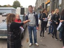 В следующей части мероприятия обучающиеся 441 и 331 групп с плакатами, призывающими к трезвости, устроили флеш-моб возле магазинов, торгующих алкогольной продукцией. Затем прохожим студенты и преподаватели раздавали памятки «О вреде алкоголя».