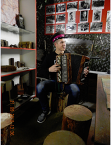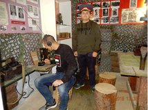 По окончании занятия студенты с удовольствием подержали в руках оружие, примерили головные уборы разных родов войск. А в руках Феклистова Андрея запел баян, который бережно хранится в землянке музея.