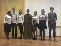Ведущими литературного монтажа были обучающиеся 122 группы: Миронова М., Кузьменко Д., Максимов И. и Бружайте В (331 группа).