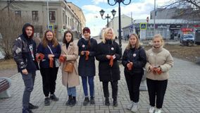 Студенты Сортавальского колледжа совместно с волонтёрами Российского Союза Молодежи приняли участие в акции "Георгиевская ленточка".