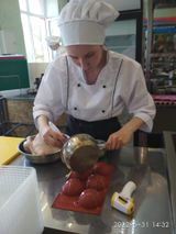Студенты продемонстрировали первичную и тепловую обработку овощей, фруктов, разделку птицы. С экзаменационным заданием все справились хорошо.