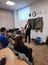 Сегодня состоялся "Разговор о важном " для студентов 821,221,741 и 742 групп. Перед студентами выступил руководитель музея "Воинской Славы г.Сортавала " Чернобай Сергей Владимирович, который не по наслышке знает о том, что сейчас происходит на Донбассе! С большим интересом ребята слушали о том, как бойцы на фронте защищают будущее России, освобождают народ от преступного нацистско-террористического режима. Выражаем огромную благодарность Сергею Владимировичу за проникновенный рассказ, видео-сюжеты с фронта, показ военной атрибутики, а также за тот патриотизм и любовь к Родине,которым было пронизано его выступление!