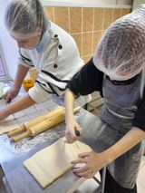 На практическом занятии школьники выпекали изделия из слоеного теста, а завершилось мероприятие чаепитием со свежими булочками.
