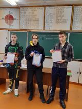 Дисциплина Химия. 1 место- Анисимов Кирилл, 2 место - Русальский Антон, 3 место- Смирнов Александр.