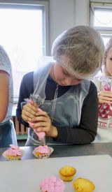 Учащиеся побывали на кулинарном мастер-классе «Капкейки», который прошёл в лаборатории, где учатся будущие повара. Ребята узнали много нового о профессии повара, с увлечением участвовали в процессе приготовления кексов.