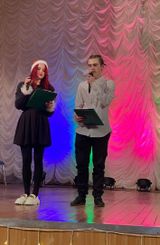 Ведущими праздника стали студенты группы №19 Лукина Ольга и Хотеев Вадим, которые на протяжении концерта советовались с умной колонкой Василисой из Ёлкино.