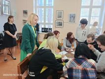 16 мая 22 обучающихся групп ОИС-2 и МР-1 Лахденпохского отделения Сортавальского колледжа под руководством советника директора по воспитанию А.В. Погодиной и преподавателя О.Ю. Косаревой посетили межпоселенческую центральную библиотеку. Там были представлены выставки картин "Краски Севера" Игоря Осипова и "Мой край задумчивый, суровый" из частной коллекции Анастасии Примак. Директор библиотеки О.Н. Сивицкая и работники библиотеки А.М. Махова, Л.В. Антоневич интересно рассказали о картинах, а также провели занимательный квест. По окончании встречи ребятам было предложено проявить личное творчество, создавая собственные рисунки. Общее впечатление ребят - в их высказываниях: "Очень всё понравилось", "Было интересно", "Завораживающие глаз пейзажи", "Спасибо огромное за посещение".