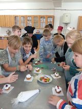 Мастер производственного обучения Кепель А.Ю. рассказала о профессии повара, а учащиеся с увлечением участвовали в процессе приготовления и украшения кексов.