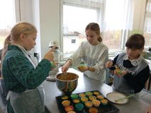 Учащиеся побывали на кулинарном мастер-классе «Морковные капкейки», который прошёл в лаборатории отделения.