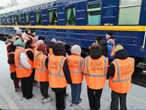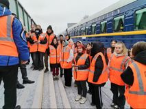 Студенты увидели, как прибывает поезд, и наблюдали за работой проводников пассажирских вагонов во время высадки и посадки пассажиров. Они также стали свидетелями посадки пассажира на инвалидном кресле. Проводники показали студентам, как готовится купе для посадки пассажиров, где находится багажное купе и купе-душ.