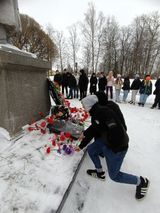Собравшиеся почтили память погибших воинов минутой молчания и возложили к памятнику цветы.