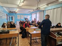 Перед ребятами выступили мастера производственного обучения Кепель Анастасия Юрьевна и Чеглаков Александр Леонидович. Они рассказали о профессиях "Мастер по ремонту и обслуживанию автомобилей", "Повар, кондитер" и "Мастер сельскохозяйственного производства".