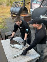 Для любителей мясных блюд в горном парке представлено кафе "Норден Биф". Ребятам была продемонстрирована особая технология процесса приготовления мраморной говядины - томление в печи на ольховых дровах (маринованная по авторскому рецепту).
