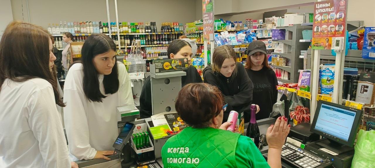 В ходе экскурсии студенты узнали факты о развитии Пятерочки, списаниях, приемке, инвентаризации, выкладке товара и верификации ценников. Попробовали все самостоятельно, поиграли в викторину.