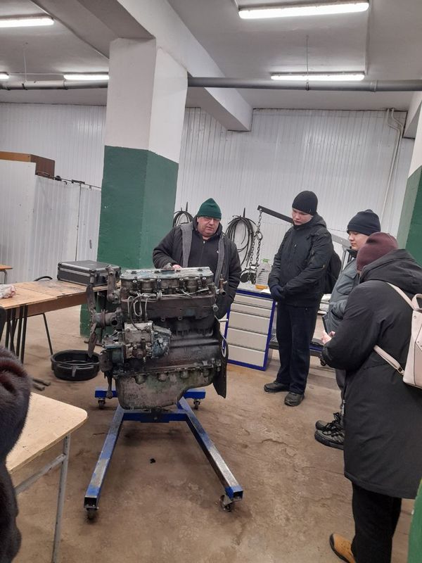 В мастерской, под руководством мастера производственного обучения, студенты учатся проводить диагностику механизмов автомобильных двигателей, осуществлять техническое обслуживание и ремонт автомобилей.