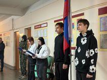 20 февраля в отделении колледжа состоялась торжественная линейка, посвященная Дню защитника Отечества. Традиционно линейка началась с поднятия флага Российской Федерации под звучание гимна нашей страны.