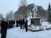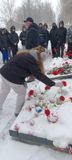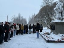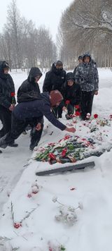 Собравшиеся почтили память погибших воинов минутой молчания и возложили к памятнику цветы.