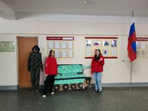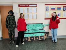 А также Первые потрудились над фотозоной к празднику: соорудили танк и танкиста рядом.