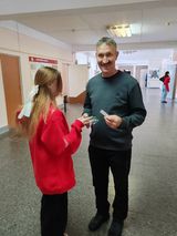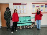 Активистки Движения Первых под военные песни поздравляли сотрудников отделения, преподавателей и мастеров производственного обучения с наступающим праздником, Днем защитника Отечества.