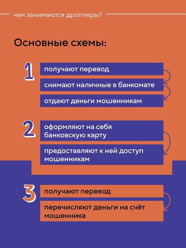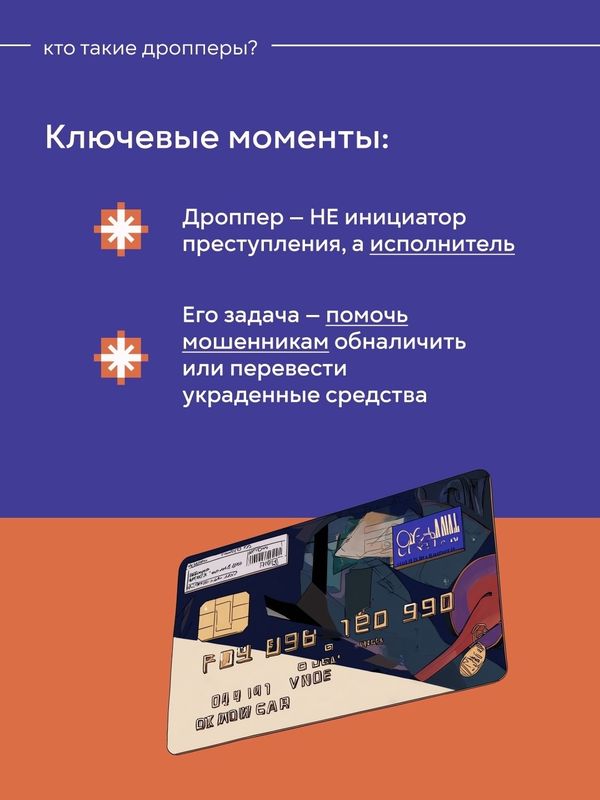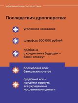 Деятельность дропперов незаконна и влечёт за собой уголовную ответственность. Даже если человек не знает, что участвует в незаконных действиях, его могут обвинить в содействии преступной деятельности и назначить уголовное наказание.
