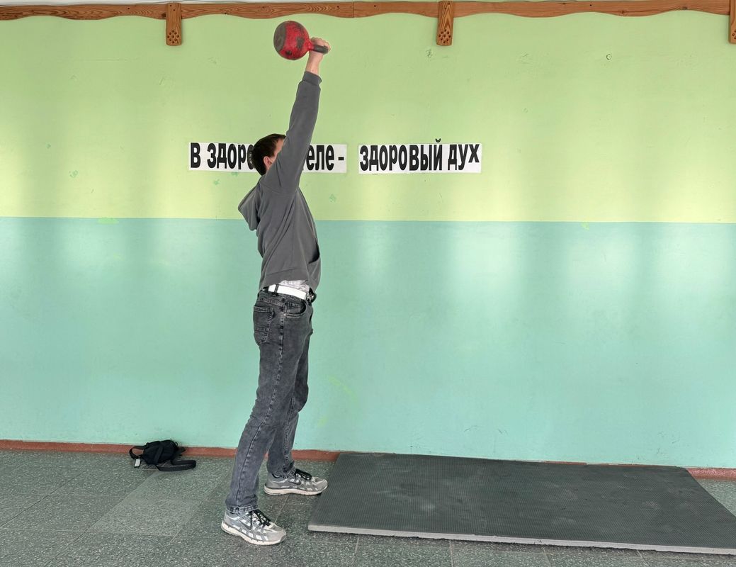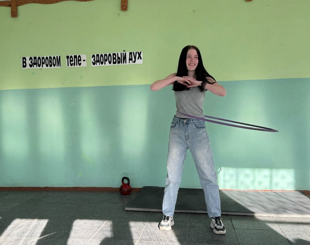 На переменках между парами студентам предлагалось на выбор - поднять гирю, встать в планку, крутить обруч или сделать упражнения на поднятие туловища. Каждый, кто выполнил задание, получил сладкий приз.