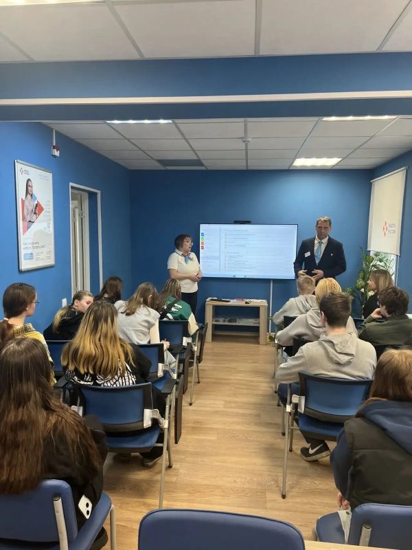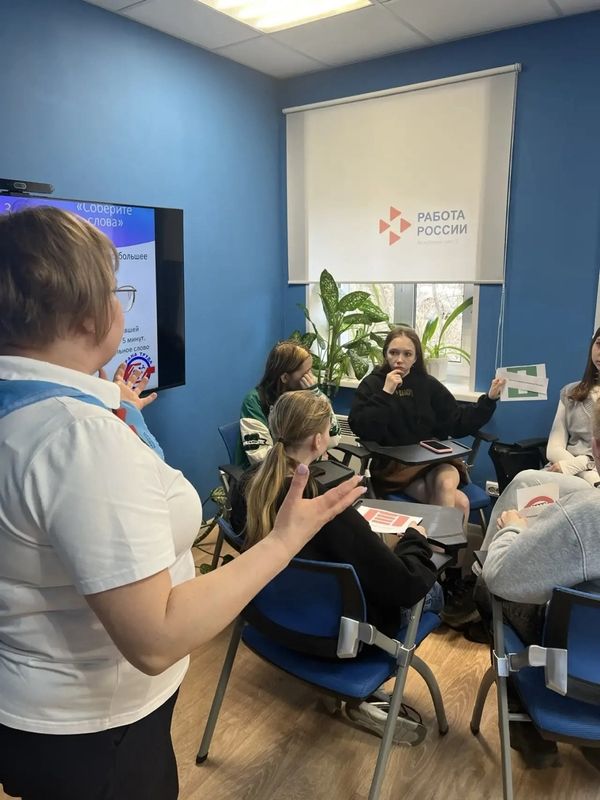 Руководитель центра Андрей Николаевич Исаев провел для ребят экскурсию и познакомил с основными принципами работы кадрового центра.