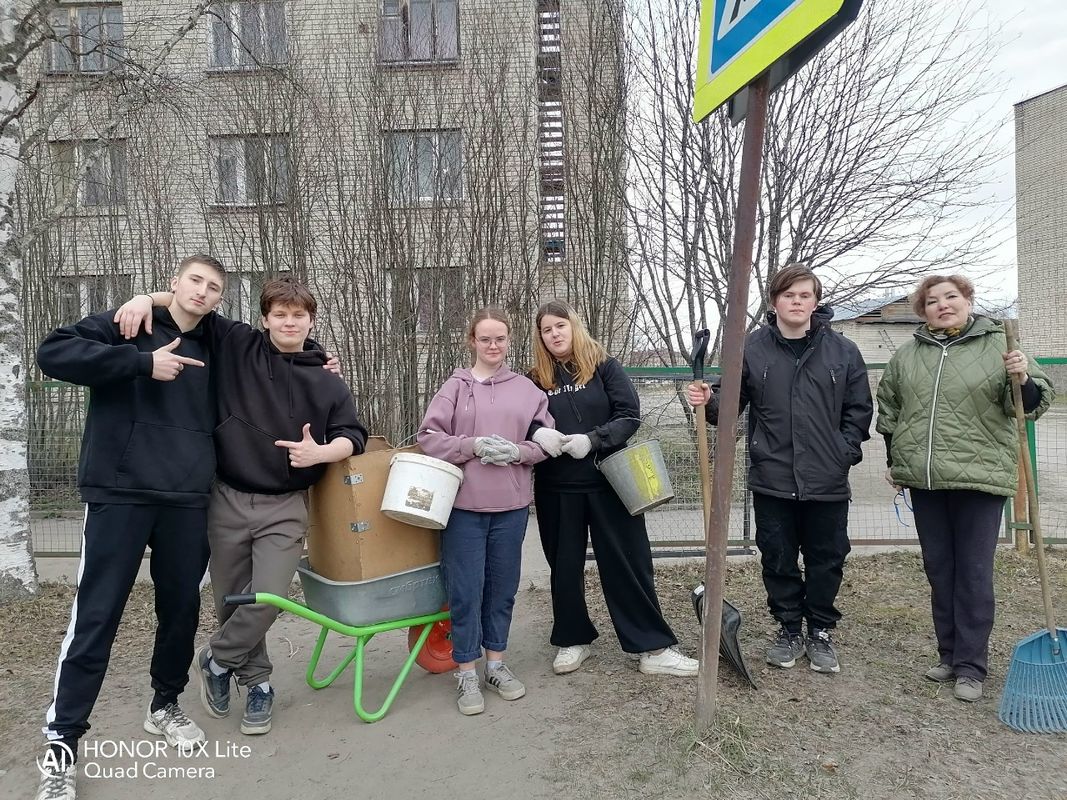 На прошлой неделе под руководством воспитателя Ильиной Е.В. студенты, проживающие в общежитии, вышли на весенний субботник.