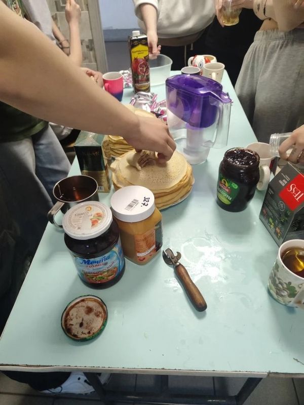 После отличной совместной работы по уборке территории вокруг общежития мы решили закрепить результат дружным чаепитием! 🍵